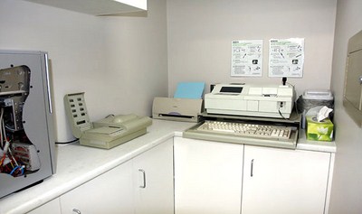 Lab RoomWe have a fitted lab to enable us to analyse bloods. We are equipped with full biochemistry and complete blood count analysers. Most blood results can be completed within 40 minutes.
