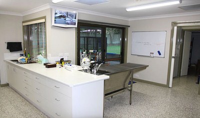 OfficeContent... Prep AreaThis area is used for non-sterile and wet procedures (dental work). It has a stainless steel table and is connected to hot water. This area is also used to take x-rays. An anaesthetic machine is also in this area so 2 anaesthetic procedures can be performed at the same time. A wide screen monitor attached to the wall allows us to constantly supervise any pets in other areas of the hospital.