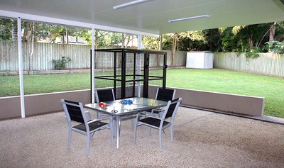 Outdoor Area / HydrobathThere are two large lockable kennels able to accommodate the largest of dogs. We also have an outdoor setting for staff to have lunch or for clients to relax while waiting for their dog to be hydrobathed. The exercise area is fully fenced and grassed.