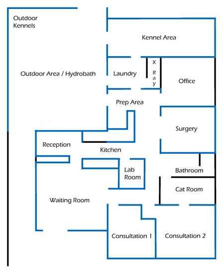 HospitalOn the map to the left, please click on any of the highlighted blue rooms for more information about each part of our hospital.